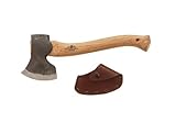 This axe is specifically designed for the carver and sculptor using traditional forging methods. The characteristic curved edge, carried well above the heads eye, the position of the edge in relation to the handle and the wide beveled face make this axe a good carving tool. The axe has a 4 3/8" face, a 14" hickory handle and weighs 2 lbs. Each axe is shipped razor sharp and includes a very complete book on use and care of your new carving axe. Made in Sweden. Premium quality axes, hand-forged at Grnsfors Bruks, a family owned forge in a small town in Sweden. As a matter of pride, when the smith is finished and satisfied with his work he marks the head with his initials beside the companys crown label. Each axe is sharp and ready to cut, has a hickory handle and leather sheath.