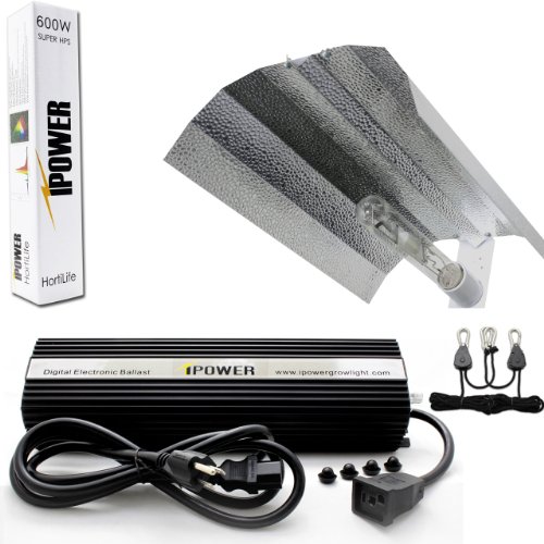 From seeding to flowering, ipower grow light has your plant covered with all the light it will ever need. hid provides the most lumen per dollar, which means the most yields for your investment. this kit eliminates the need for mixing incandescent with fluorescent or additional leds that provide little gains at 2 to 3 times the cost. the balanced spectrum set of lights will not only be well-absorbed by plant chlorophylls, but also promotes healthy chlorophyll production and regulates plant life cycle. package includes one 600-watt dimmable electronic ballast one 600-watt super hps bulb, 19-Inch wing reflector, 1 pair of rope ratchets. details: electronic dimmable digital ballast. 120/240 volt supported. automatic convertible hps and mh bulbs. adjustable power settings 50-Percent, 75-Percent and 100-Percent. standard hydroponic-Inch s-Inch plug. one heavy duty power cord. open and short circuit protection. ignition failure protection. end-of-bulb-life protection super high pressure sodi.