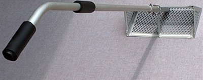 Anodized aluminum rake for hunting sand fleas. Product consists of a 15" wide basket and 58" long removable handle.