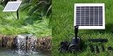 Features * It can be set up easily wherever desired without the need for batteries or wiring installation. * 5 Watts Mono-Crystalline Silicon Solar Panel * 15V DC Pump Operation Voltage * Water lift : 1.4 meters ( * Solar Panel Dimension: 27cm x 23.5cm * Water flow Capacity: 500 LPH * Cable Length: 5 meter or approximate 16 feet * Brand New in Retail Packaging * Package includes : * 1x 10.62 inches x 9.29 inches Solar Panel. * 1x 15V submersible pump with 5 meters lead. * Accessories includes: 2 fountain heads and 4 inter-connectable tubes, 1x solar panel support spikes.