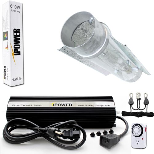 From seeding to flowering, ipower grow light has your plant covered with all the light it will ever need. hid provides the most lumen per dollar, which means the most yields for your investment. this kit eliminates the need for mixing incandescent with fluorescent or additional leds that provide little gains at 2 to 3 times the cost. the balanced spectrum set of lights will not only be well-absorbed by plant chlorophylls, but also promotes healthy chlorophyll production and regulates plant life cycle. package includes: one 600-watt dimmable electronic ballast, one 600-watt super hps bulb, 6-Inch cool tube with add-on wings, 1 pair of rope ratchets. details: electronic dimmable digital ballast. 120/240 volt supported. automatic convertible hps and mh bulbs. adjustable power settings 50-Percent, 75-Percent and 100-Percent. standard hydroponic-Inch s-Inch plug. one heavy duty power cord. open and short circuit protection. ignition failure protection. end-of-bulb-life protection. super hig.