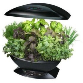 Enjoy fresh greens at every meal no matter what the season. With AeroGrow's AeroGarden garden kit, it's easy to cultivate lettuce, cherry tomatoes, herbs, chili peppers, edible flowers, and more in an energy-efficient, organic-based environment right in the kitchen. This compact chef's tool includes everything the indoor farmer needs: a preseeded bio-dome grow pod, two daylight-spectrum bulbs, nutrients, and a helpful tending and harvesting guide complete with recipes. Just follow the simple instructions to set up, and the growing process starts immediately, with germination occurring within 24 hours and a mature plant that is ready five times faster than if grown in soil. The AeroGarden system monitors itself to create ideal growing conditions for each plant and alerts you when it's time to add more water and nutrients. No dirt or natural light is needed, so even low-light spaces are suitable. Plug kits for many kinds of plants are available from AeroGrow.