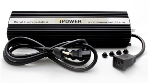 Our bestseller of all time. This iPower Digital Ballast features high power factor, high luminous efficiency, adjustable wattage output, and convertibility between HPS and MH light bulbs. The iPower's high operating frequency not only ensures continuous power delivery, but also has conserving bulb life in mind. As efficient and powerful as the iPower is, its silent operation and light weight design adds to the maximum lumen any plant will ever need. *ballast shape/color may vary * Zero acoustic resonance * Anodized aluminum fins for maximized heat dissipation * Sunlight Supply (Brand S) style output plug; Hydro farm fixtures will need BAASP adapters * Internal RF protection * Internal Resin coating for long life * Conveniently wired with standard hydroponic "S" plug Each Ballast Comes with: * 1x Dimmable digital ballast * 1x Heavy duty power cord (a $10 value FREE from us) * 1x Operating manual * Specifications * Operating Temperature: -40*C 65*C. * Operating Voltage Range: 100V 265V. * Power Supply Frequency: 47 63 Hz * Operating Frequency: 25 100 kHz * Power Factor: > 0.99 * Total Harmonic Distortion (THD): < 10% * Crest Factor: < 1.7 * Dimmable Power Levels: 50%, 75%, 100% * Dimming Control: knob * Open & Short Circuit Protection * Ignition Failure Protection * Overheating Protection * End-of-Bulb-Life Protection.