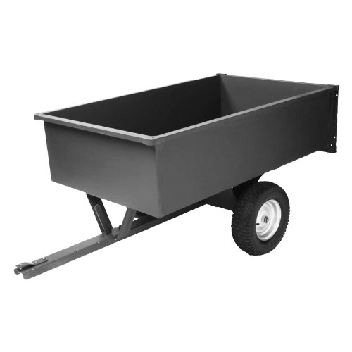 The Precision Products LC1700GY 17-cubic foot trailer dump cart is a handy tool for many purposes around the yard or farm. The large and strong cart, designed for trailing behind a tractor, holds up to 1,500 pounds for big loads. It's ruggedly constructed, and features a heavy-duty 16 gauge powder-coated steel bed (measuring 58 by 34 by 14-3/4 inches), rests on a 3/4-inch solid steel axle for strength and reliability, and sports two 16-inch pneumatic turf tires on steel wheels for covering even the most uneven terrain in challenging conditions. Dumping is as easy as pulling the dump latch toward your mower or trailer. The cart is covered by a 90-day limited warranty, and some assembly is required.--Jeffrey Dalto